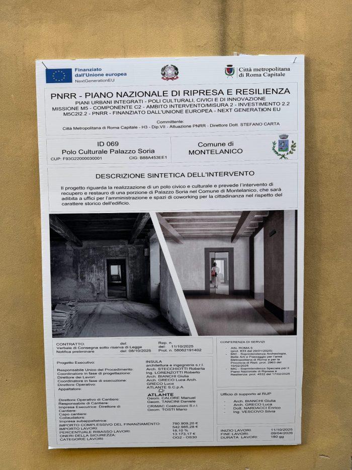 A Montelanico sono stati avviati i lavori di recupero dello storico Palazzo Soria, acquisito dal Comune negli anni ’90 e mai completamente restaurato. Oggi, grazie ai fondi del Piano Nazionale di Ripresa e Resilienza – PUI Cultura, una parte significativa dell’edificio tornerà a nuova vita, con la creazione di uffici comunali e aree di co-working.